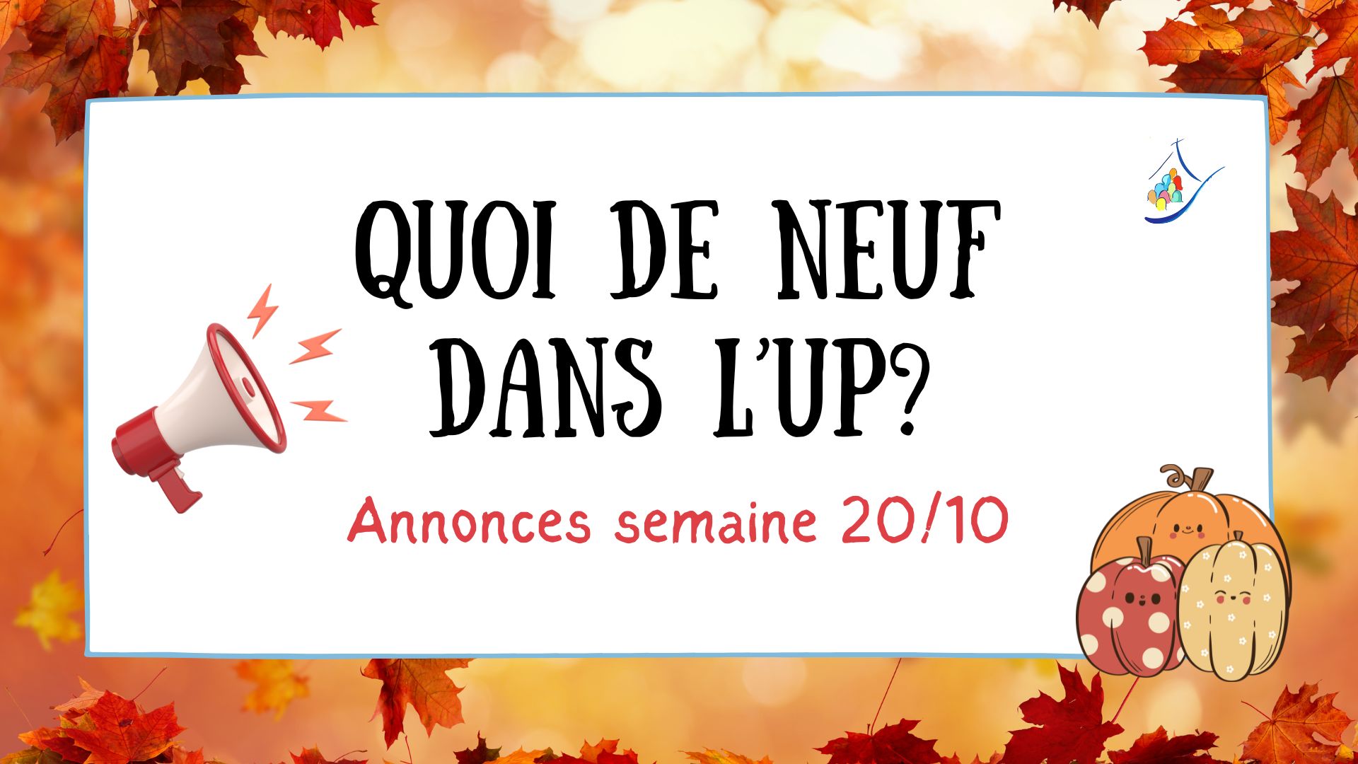 Quoi de Neuf dans l'UP? - Annonces 20/10
