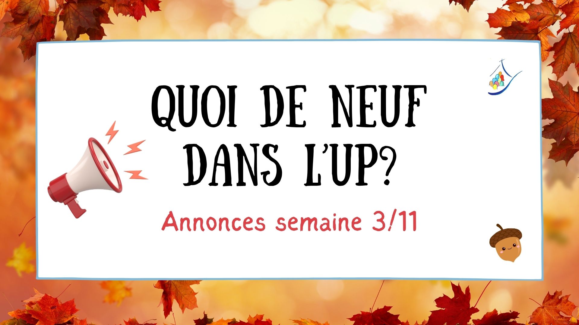 Quoi de Neuf dans l'UP? - Annonces 3/11